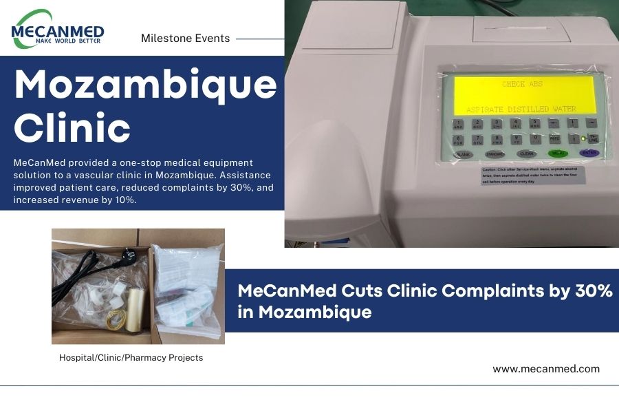 MeCanMed provided a one-stop medical equipment solution to a vascular clinic in Mozambique. Assistance improved patient care, reduced complaints by 30%, and increased revenue by 10%.